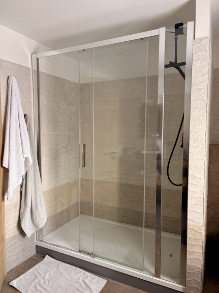 Bagno con doccia walk-in. Asciugacapelli e scaldasalviette. WC separato].