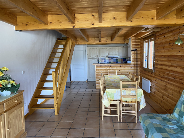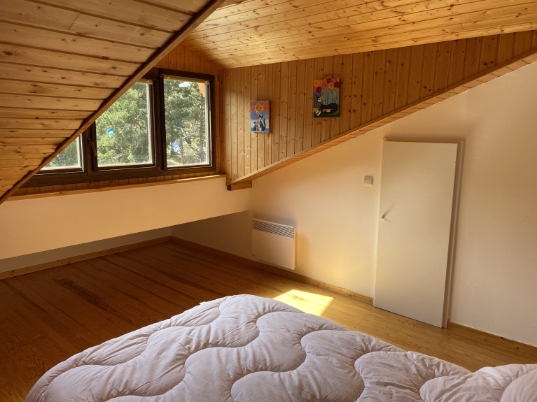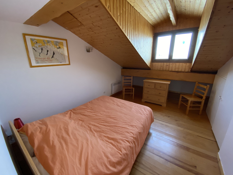 Bellissimo appartamento duplex F5 di 76 m², a 250 m dalla strada principale, con ampio balcone esposto a est e splendida vista sul villaggio, sulle piste e sul lago. Ingresso (armadio/guardaroba), soggiorno (TV, divano letto), cucina a vista (piano cottura a 4 fuochi, forno, cappa aspirante, frigorifero, lavatrice, asciugatrice, lavastoviglie), 2 camere (una con letto matrimoniale e l'altra con 2 letti singoli), bagno con doccia/WC. Al piano superiore: 2 camere da letto mansardate (letto da 140 cm), bagno, WC separato.