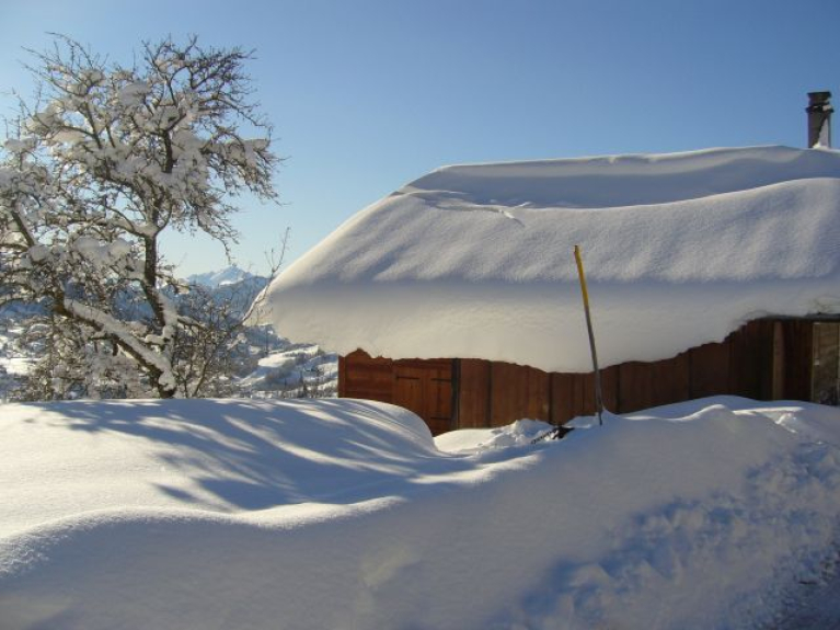 Piccolo chalet tipico individuale, situato a 5 km da Megève. Rivolto a sud.