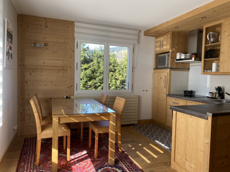 Appartamento rivisitato: stile degli attuali chalet. Bella decorazione, biancheria da letto impeccabile.
