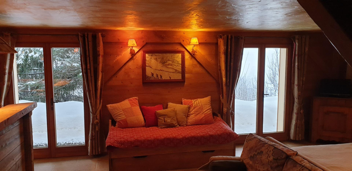 Chalet tradizionale in legno su un giardino privato di 800 m2, che può ospitare 10/11 persone. Situato vicino al resort, ha una terrazza molto grande e una bella vista a 180° sulla montagna e il villaggio di Araches.