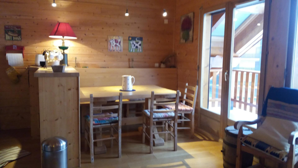 L'appartamento ha un soppalco con una seconda doccia/lavandino e pareti in legno, così come tutti i mobili. Ha una vista superba sulla montagna in pieno sud/ovest senza vis-à-vis con balcone che permette di pranzare s/pb a 8 persone. Vietato fumare ! foto inviate su richiesta