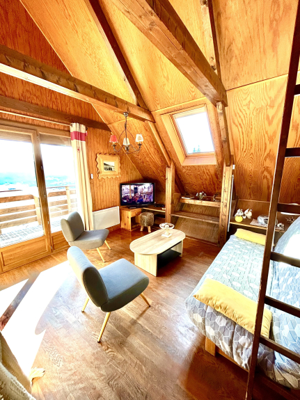 Chalet con buoni servizi, grande vista sul lago matemale e capcir. Parcheggio pubblico adiacente allo chalet. Fermata del bus navetta gratuito davanti allo chalet e molto utile per quasi tutti gli alloggi del resort