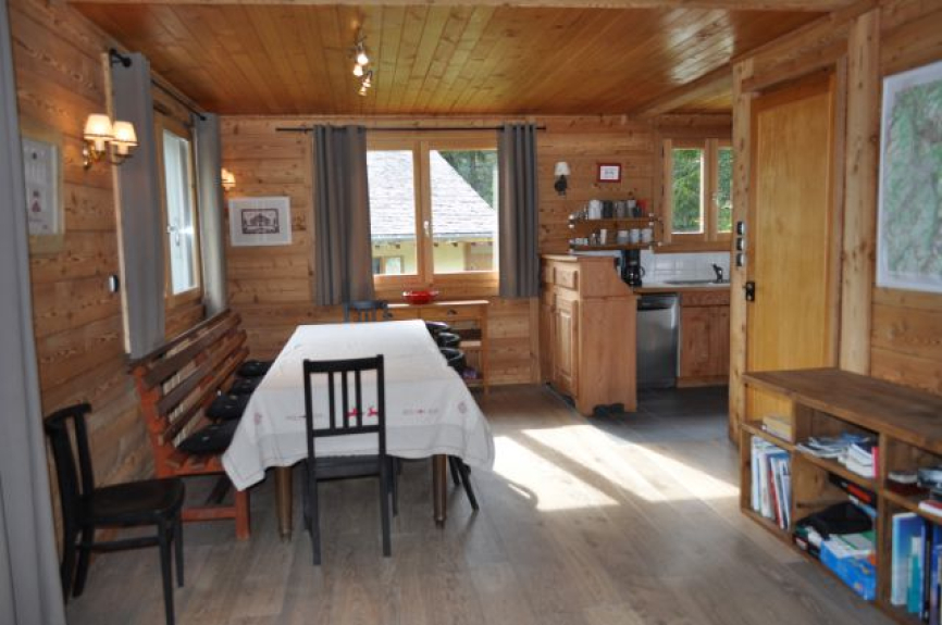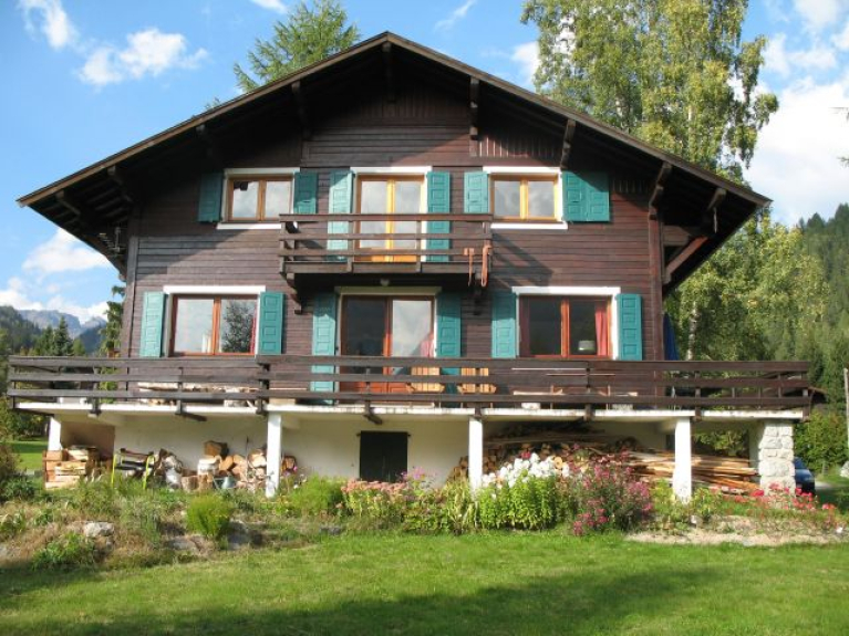 Chalet familiare confortevole, ambiente molto tranquillo, esposizione sud, vista sul Monte Bianco, terrazza con mobili da giardino, giardino di 1000m2, 10mn a piedi dal villaggio e dai negozi.