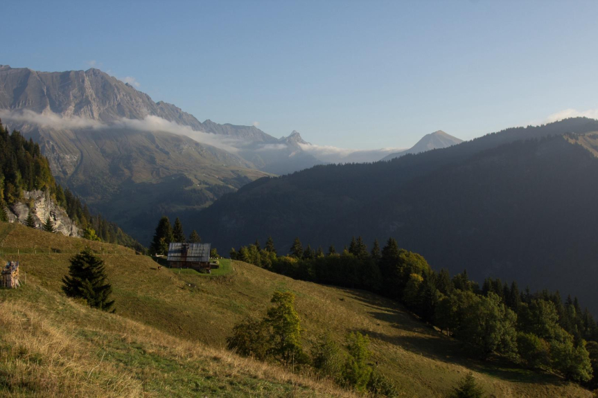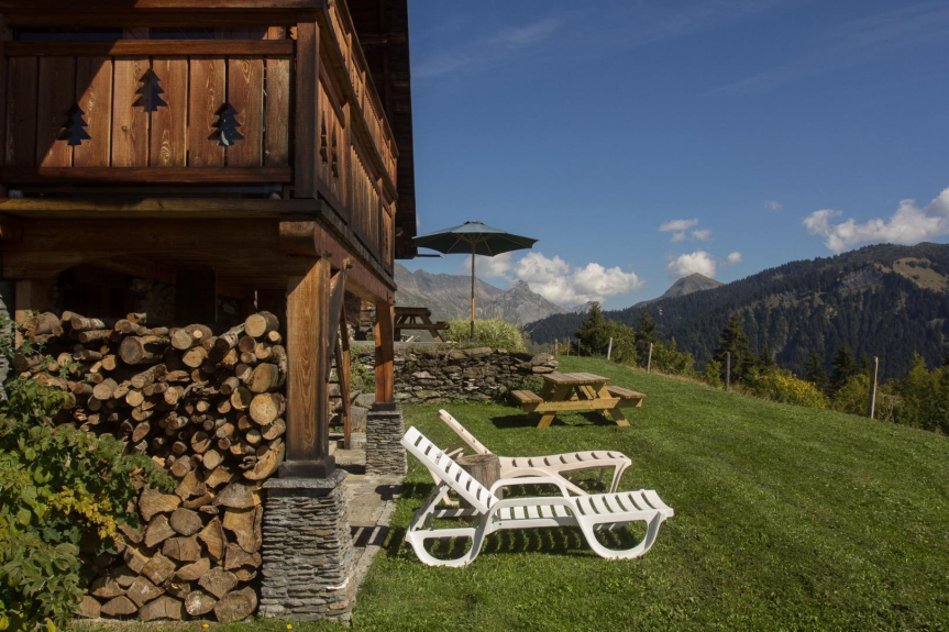Chalet alpino ad un'altitudine di 1450m con vista sul MONT-BLANC, 10 ettari di terreno.