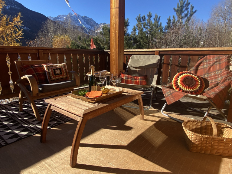 Arroccato in cima alla frazione di Serre Barbin, tra Villeneuve-la-Salle e Monetier-les-Bains, lo chalet si trova in mezzo alla natura, esposto a sud, con una magnifica vista sul massiccio degli Agneaux, e sul Dito di Dio (La Meige) in un ambiente perfettamente calmo e soleggiato.