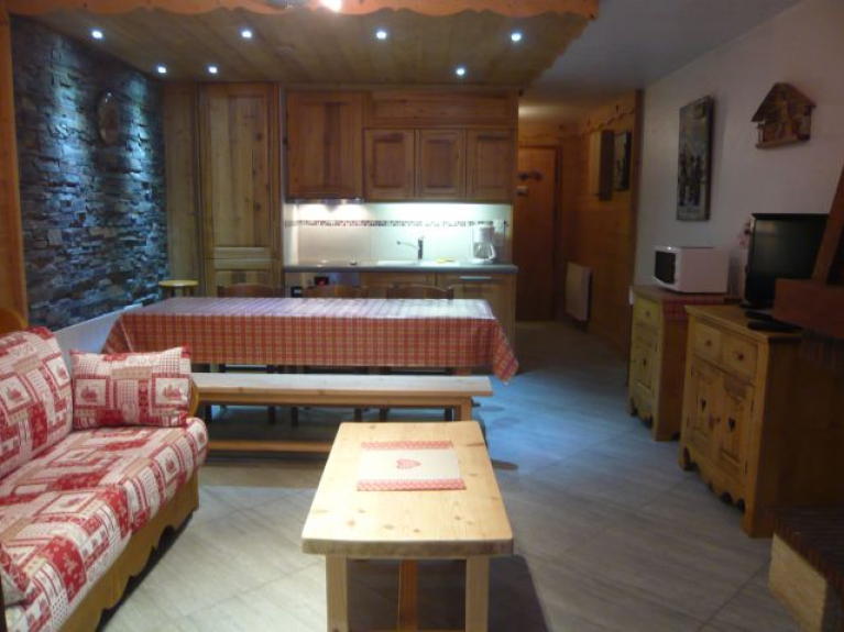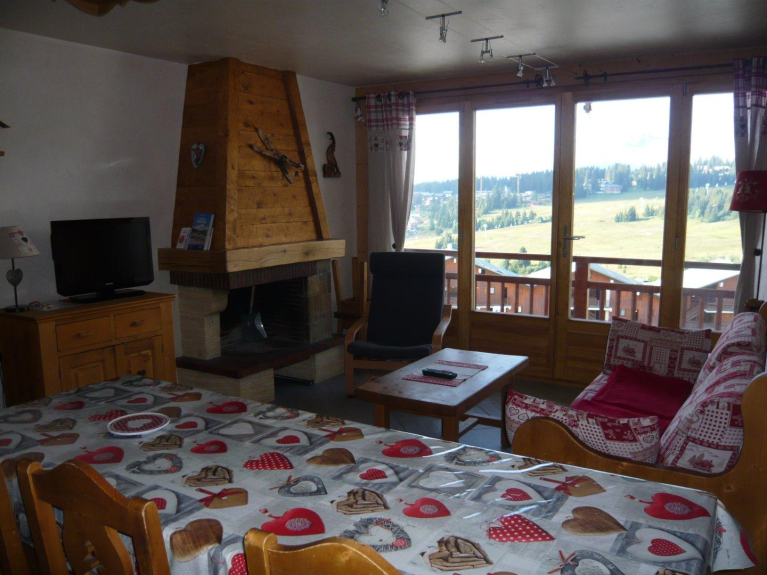 Appartamento con balcone esposto a sud in uno chalet collettivo al 4° piano con ascensore, situato nel cuore della località, vicino ai negozi e a 200m dalle piste. Non trascurato, vista molto bella sul villaggio e le montagne Beaufortain. Grande soggiorno con camino, cucina completamente attrezzata (piano cottura, forno, LV, TV, macchina per il caffè, tostapane ...) divano letto per 2. Camera da letto con letto matrimoniale. Montagna d'angolo con letto a castello e letto a cassetto. Bagno con vasca e WC, WC separato. Numerosi armadi. Armadio per gli sci. Animali non ammessi. Tariffe secondo i periodi.