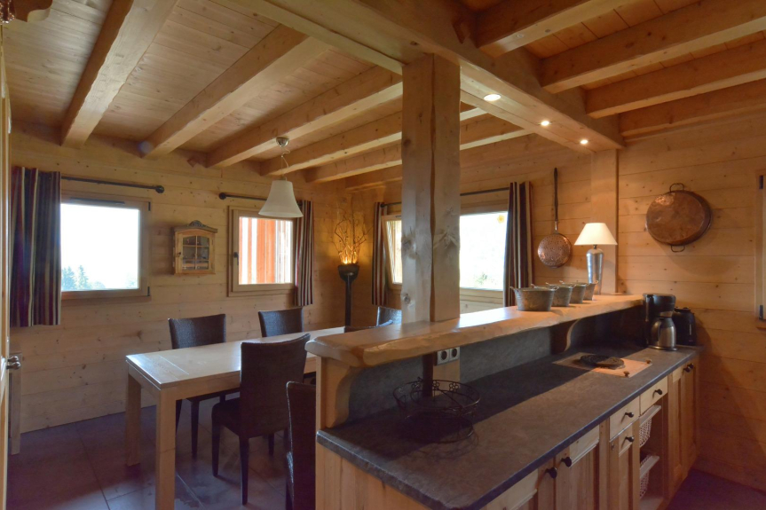Di recente costruzione (2007), molto spazioso, interamente in legno, lo chalet combina tutti i vantaggi del comfort moderno con il fascino, l'intimità e la calda atmosfera dei tradizionali chalet savoiardi. Decorato e arredato con cura.