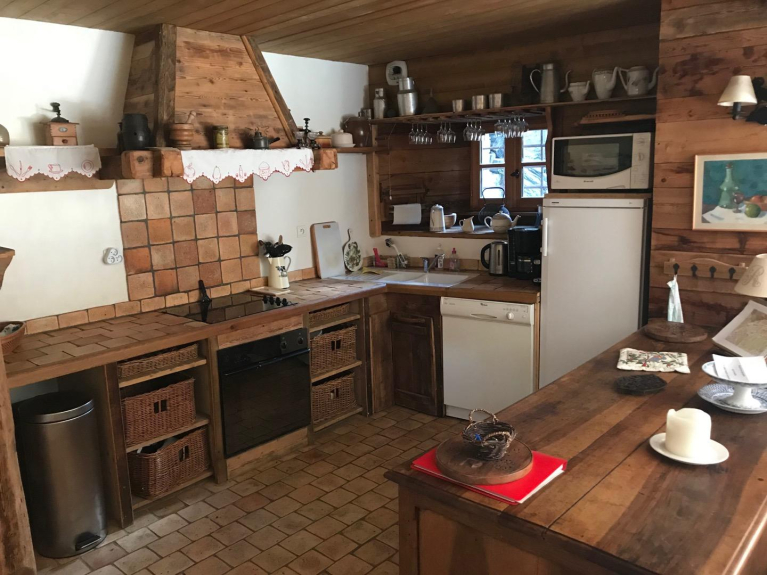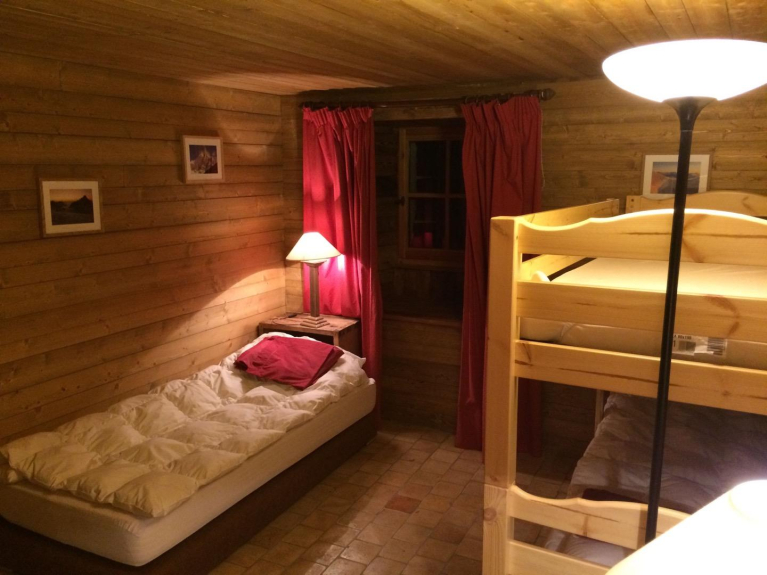 Piano giardino: soggiorno con camino e cucina attrezzata, 1 camera con 3 letti (di cui 2 a castello) con lavabo e doccia, 1 camera con letto matrimoniale, 1 bagno con vasca-doccia, 1 WC separato.