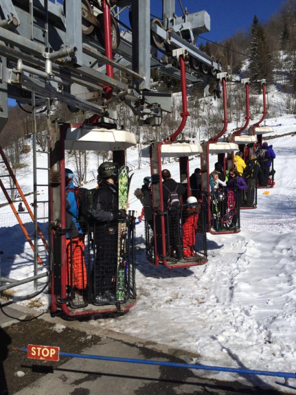 Sulla stessa piattaforma c'è un negozio di articoli sportivi che affitta scarponi, sci e armadietti da sci in modo che tutti possano tornare allo chalet dopo aver sciato.