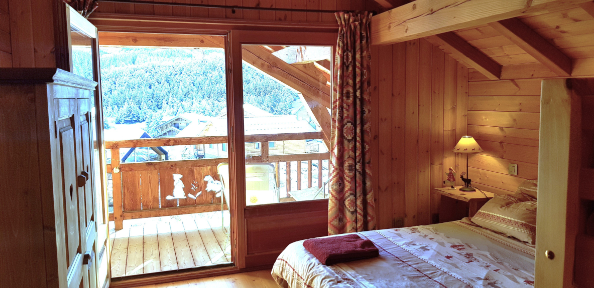 Lato notte: 1 camera da letto al piano terra con bagno e WC, e 3 camere da letto al piano superiore con 1 bagno e 1 WC. Biancheria da letto di qualità. La grande camera da letto al primo piano (26m²) è un paradiso per bambini e adolescenti, aperta sulla montagna, con un home cinema e un calcio balilla. 2 camere da letto si aprono su un balcone attrezzato con sedie a sdraio.