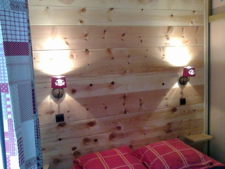 Appt F2 tout confort 6 pers au pied des pistes situé au 5ème étage d’une résidence avec ascenseur, "Les Portes de La Vanoise" Séjour avec canapé convertible Rapido 2 personnes (1,40 X 2,00 m) ; 1 coin montagne avec 2 lits superposés (1,40 X 0,80 m) ;1chambre avec lit double (1,40 X 1,90m) et grand placard penderie; kitchenette bien équipée; salle de bains (baignoire/lavabo) WC séparés; balcon;casier à skis.