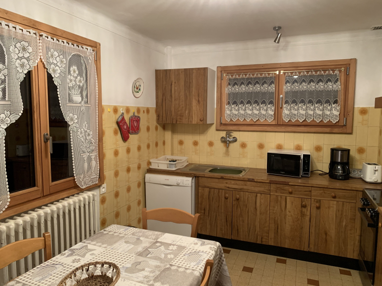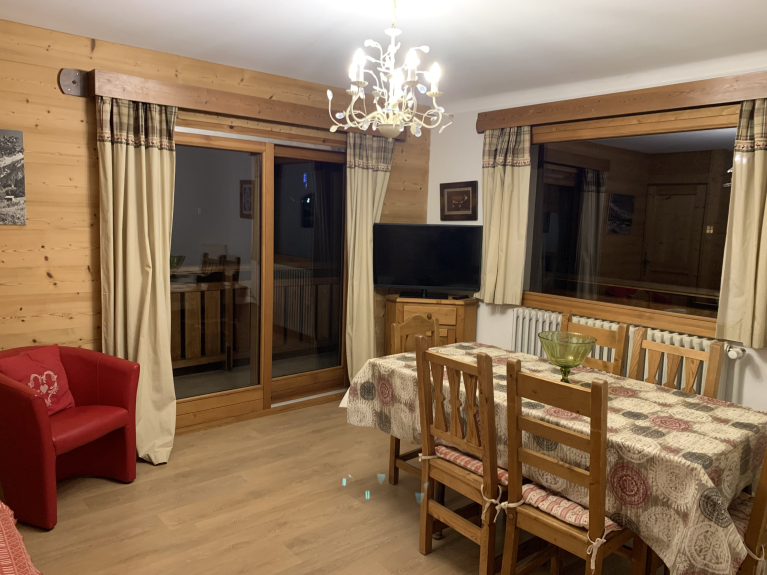 Apt. 4 Pièces dans chalet, situé au centre de la station dans un endroit calme. A 5mn des pistes de ski et de tous commerces. Parking extérieur, grand jardin. Possibilité de rejoindre les pistes en skis lorsque l'enneigement le permet. Balcon exposition sud-est sud-ouest avec vue sur les pistes de ski et jardin. Accès direct au jardin par petit escalier en bois.