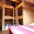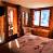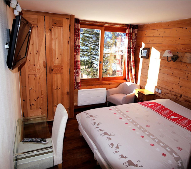 Ce chalet compte 3 suites chacune avec leur salle de bain privative, une chambre dortoir pour les enfants, deux chambres double dont une qui communique avec une mezzanine, soit 6 chambres en tout plus une mezzanine, et deux salles de bain communes (en plus des 3 privatives).