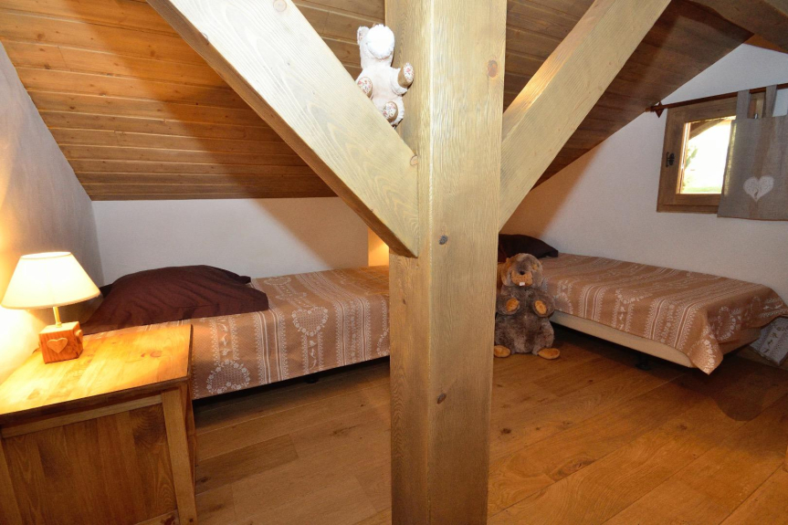 Chalet de charme avec sauna entièrement rénové (décoration savoyarde) - cuisine équipée, vaisselle et batterie de cuisine, cheminée feu de bois, literie confort 90 x 200 pour les lits simples (sauf chambre enfants 80 x 190 et canapé lit) et 160 x 200 pour 2 lits double.