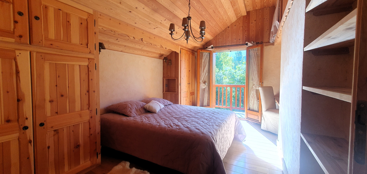 Chalet de charme neuf pierre et mélèze, exposé sud et sud-ouest avec balcon et jardin privatif
