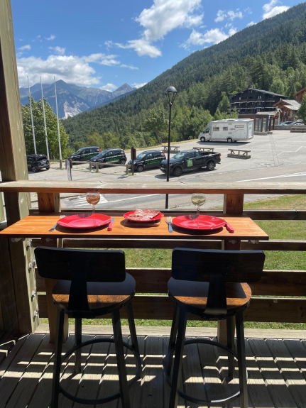 A 150 m des pistes et du centre du village , beau duplex de 45m2 avec balcon .Vue panoramique sur la vallée de la Maurienne.