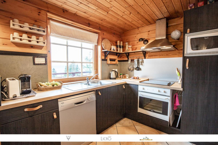 Chalet finlandais, entièrement construit en bois, décoré chaleureusement. Grand balcon expo sud et vue Vanoise. Proximité de pistes.