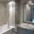 1 salle de bain avec lavabo et baignoire et sèche cheveux.