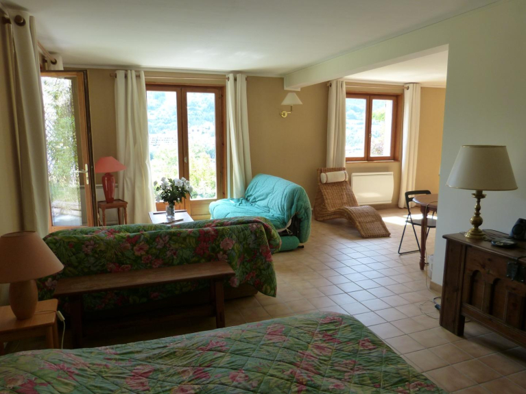 Grand studio en rez-de-chaussée, 2 /4 personnes, 70 m2, avec jardin & terrasse.- salle de bain indépendante équipée d'une douche, bar cuisine, coin salon et coin chambre, 1 lave-vaisselle, 1 lave-linge. Parking privatif,