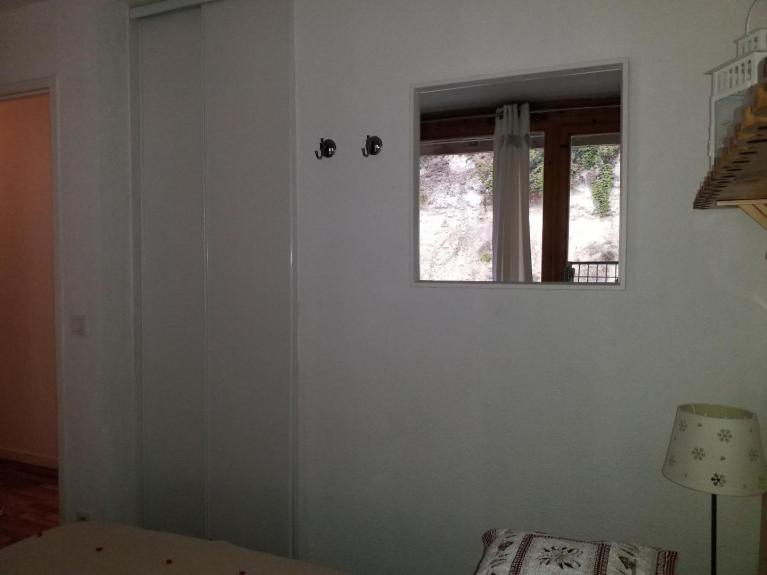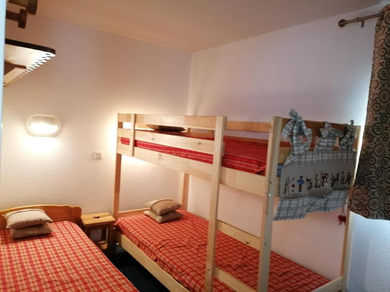 - Une seconde chambre équipée d’un lit superposé, d’un lit simple et d’un grand placard.
