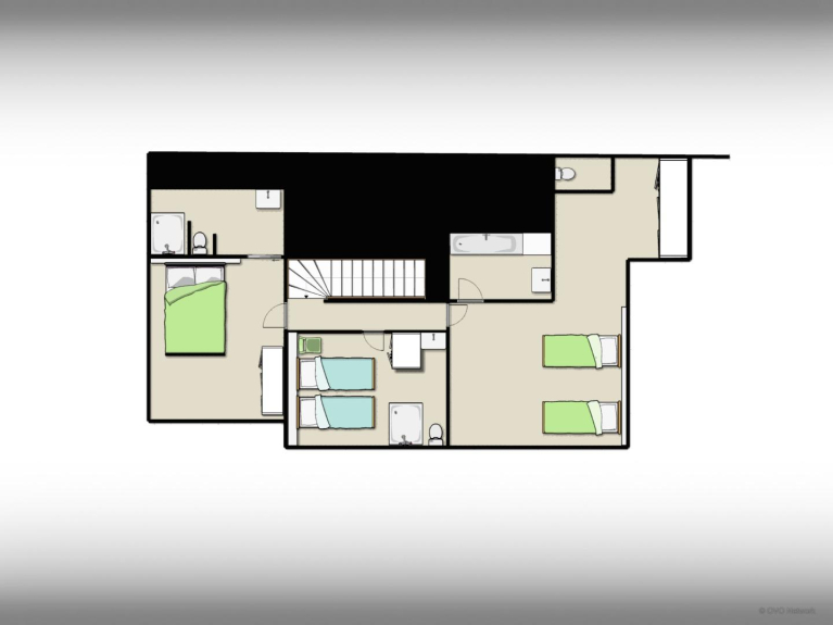 Le couchage est également flexible : vous aurez le choix de quatre chambres et une jolie "cabine", soit en tout deux lits doubles et 8 lits simples transformables en lits doubles. Et avec cinq salles de bains - dont quatre attenantes aux chambres - vous ne perdrez pas une minute avant de partir skier! A votre retour des pistes, vous disposerez d'un local chauffé dédié à l'après-ski, avec sèche chaussure et gant, machine lavée et sèche linge, évier...