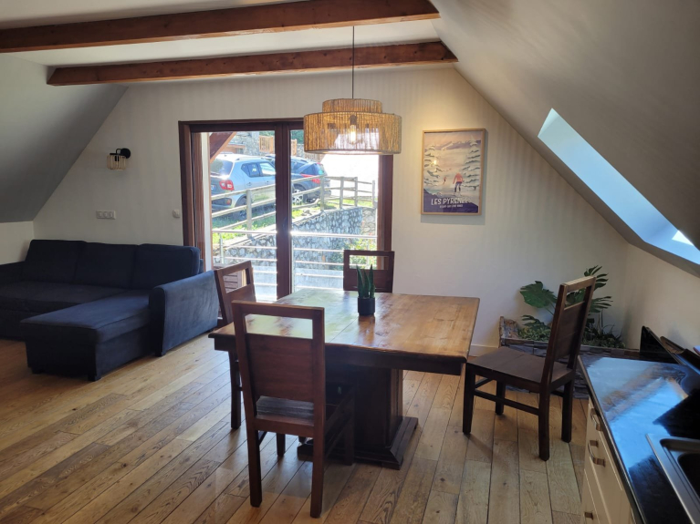Loue gîte Haut de gamme pour 2 à 4 personnes dans un environnement exceptionnel, face au Massif du Néouvielle classé Patrimoine Mondial de l'UNESCO. Situé à 3 kms de la célèbre station thermale de SAINT-LARY SOULAN, ce gîte haut de gamme est situé à l'extrémité du village de CAMPARAN le plus ensoleillé de la vallée d'Aure, au calme et au départ d'un chemin de randonnée. Exposé plein sud, le gîte possède de grands volumes associant la pierre et le bois.