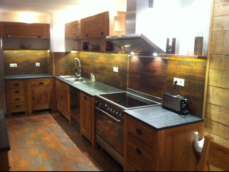 1 cuisine équipée avec 1 grand piano de cuisson, équipé de plaques induction, grand four, hotte, micro ondes, lave-vaisselle, réfrigérateur américain, cafetière électrique, cafetière Nespresso, bouilloire, grille-pains, appareils à raclette et à fondue, mini poêlons, plancha.