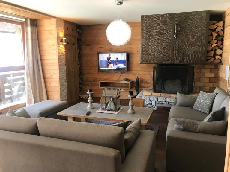 Loue très bel appartement de 160 M2 pour 14 à 18 personnes (entrée au niveau 0, 1ier étage avec ascenseur, côté piste). Prestations haut de gamme mélangeant le style montagne et contemporain.