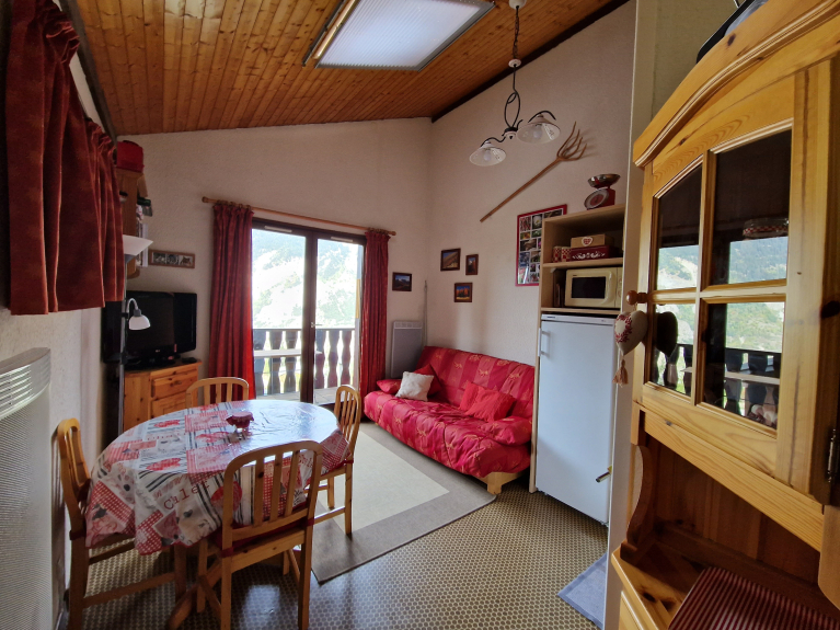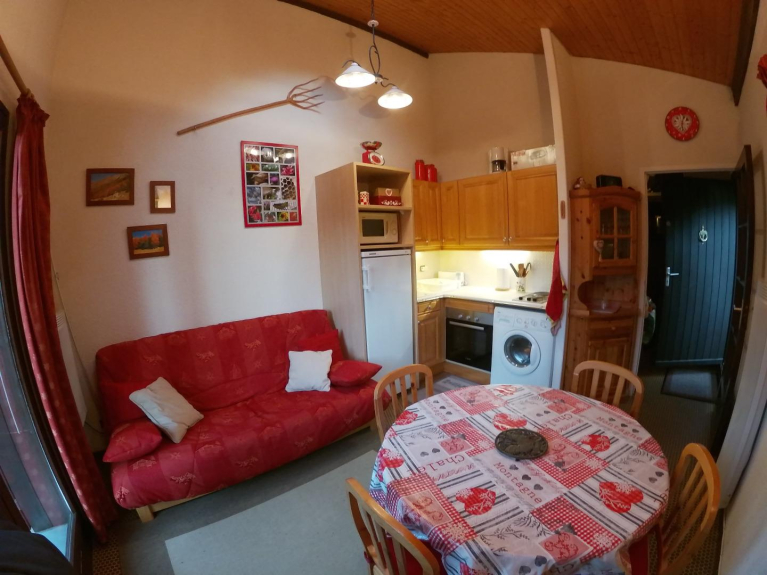 30m2, séjour/cuisine, chambre avec lit double, coin montagne avec lit superposé 2 couchages, salle de bain/WC, grand balcon avec vue dégagée sur les sommets de la Vanoise. Tout confort (lave-linge, TV écran plat / Décodeur avec Lecteur USB pour lire vos films, appareil à raclette/pierrade, service à fondue, cafetière, grille-pain, pelle à neige/luge pour les enfants, etc...)