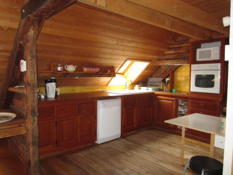 - Cuisine américaine très spacieuse et chaleureuse en mélèze, comprenant de nombreux rangements, et donnant sur un cellier permettant de ranger les réserves de nourriture et de faire sécher les vêtements.
