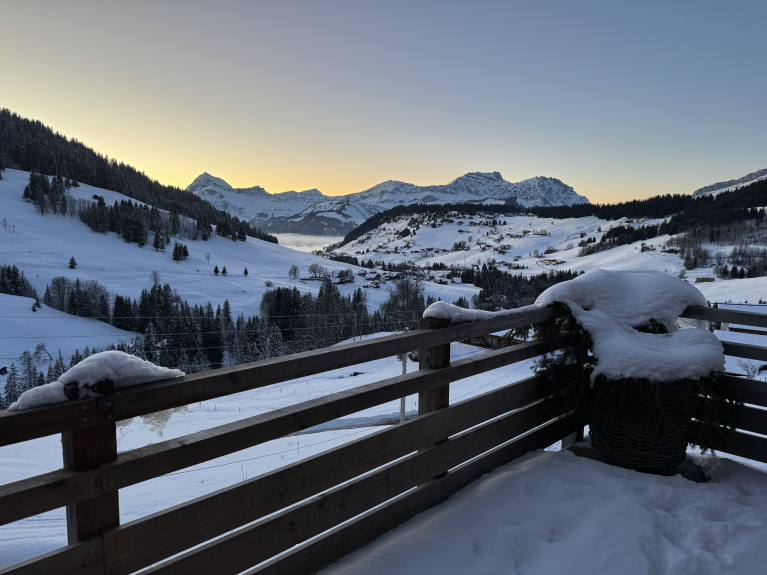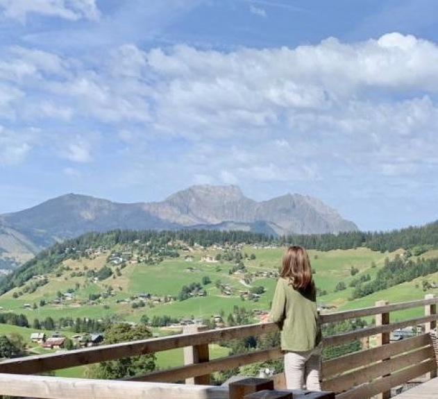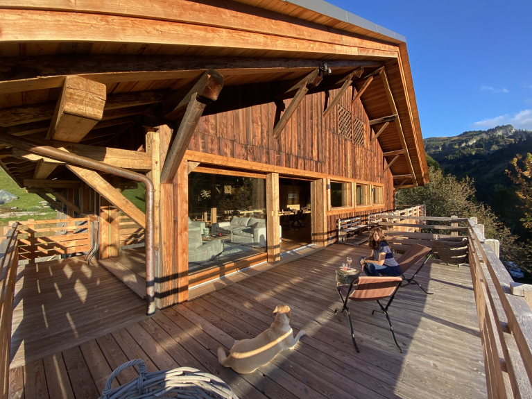 Sa terrasse plein sud avec vues sur la chaîne des Aravis est parfait pour des apéros au soleil.