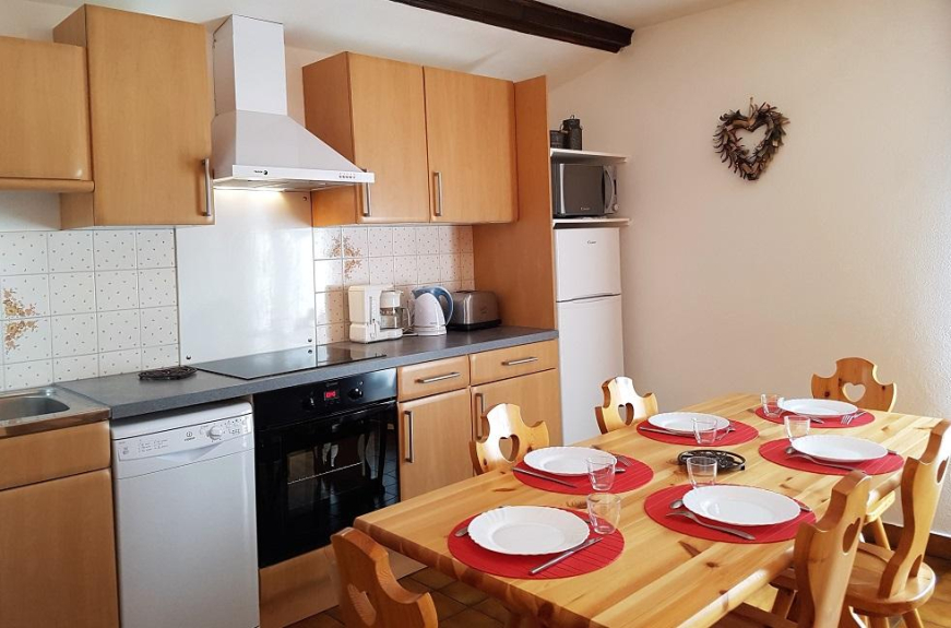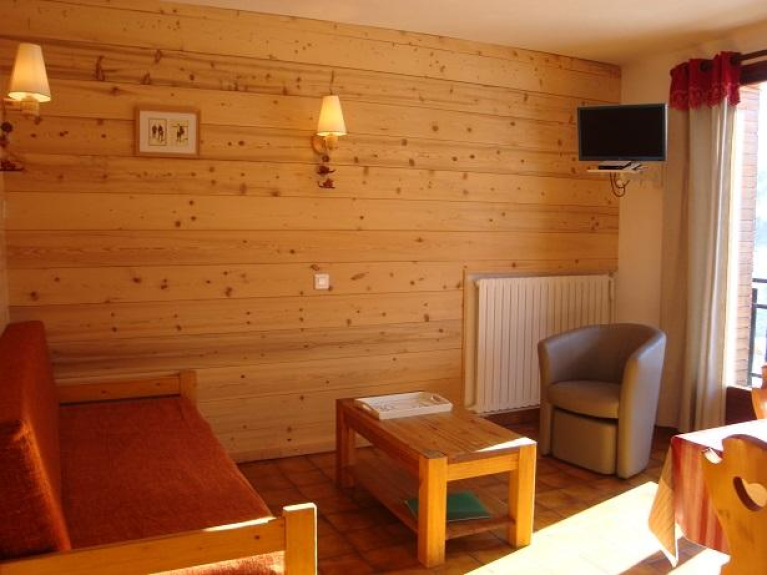 Appartement d'une capacité de 6 personnes. Il est situé dans le centre du village, dans une petite résidence de 8 appartements dont 2 seulement réservés à la location, les autres sont occupés par les propriétaires. Tous commerces à proximité. Les pistes de ski sont à 400 m. Le logement est desservi par une navette gratuite qui circule en continu dans la station et dont l'arrêt est à 40 m. Appartement au décor montagnard et chaleureux de 43 m2.