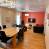 Salle à manger et salon avec TV grand écran, salle d'eau et WC.