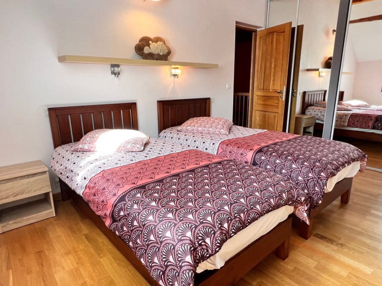 Etage : chambre 1 avec 1 lit double180 cm et TV écran plat,