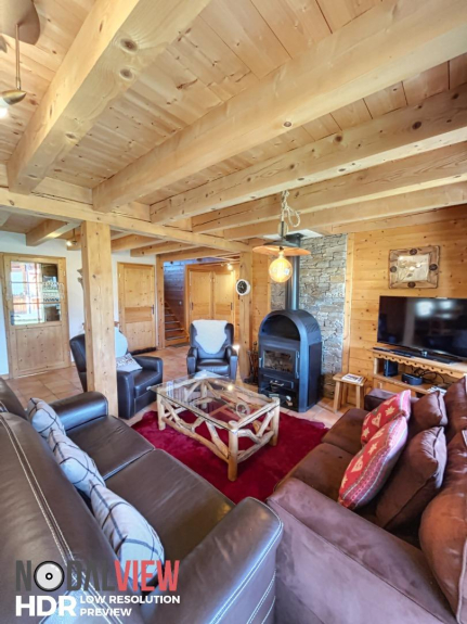 Confortable et spacieux, ce chalet de + de 200m² , se compose d'une pièce à vivre de 50 m², 3 chambres, 1 salle de douche, 2 WC en rez de chaussée, mezzanine .A l étage une grande salle de bain avec baignoire et WC ,balcon. Abri 2 voitures.