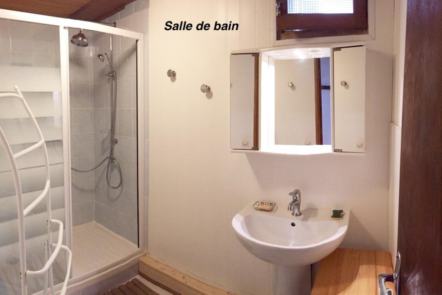 Entrée, séjour, cuisine indépendante, wc indépendant, salles de bain avec douche, deux chambres, une avec un grand lit "Sampur" 160/200, l'autre avec deux lits en 90/200.