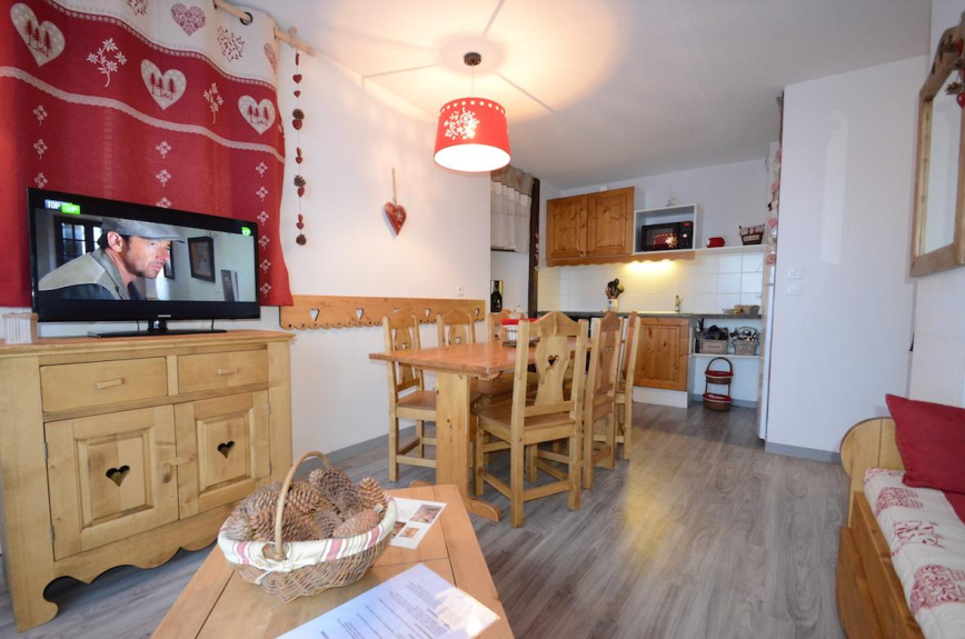 Appartement refait à neuf avec déco. montagne, fonctionnel, proche des commerces et des pistes, vue sur la vallée, facilité de déchargement par la terrasse de 25 m2 lors de votre arrivée et à deux pas du parking couvert gratuit.