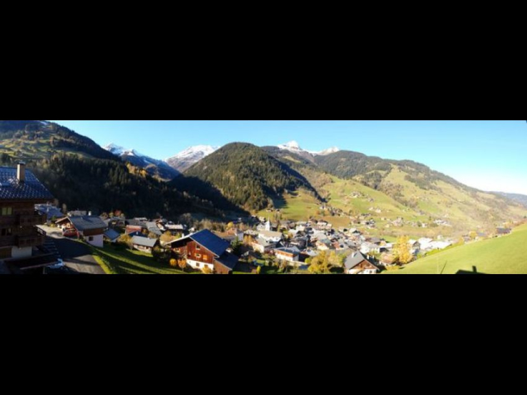 Très proche et juste au dessus du Village d’Arêches avec une grande baie vitrée et balcon terrasse, sans aucuns vis-à-vis et une vue magnifique sur toute la vallée.