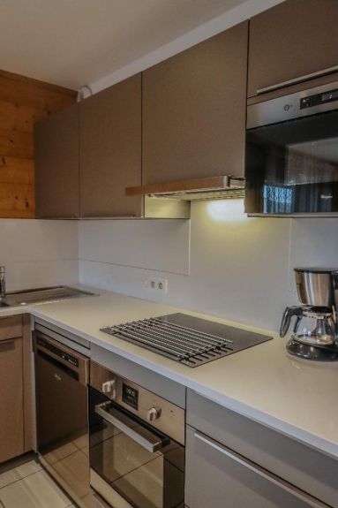* coin cuisine avec 3 plaques à induction, lave vaisselle, four, four à micro-onde, réfrigérateur, congélateur, cafetière, bouilloire et grille-pain électriques ...