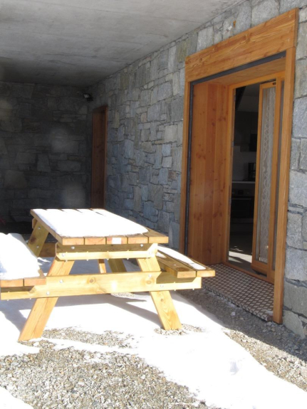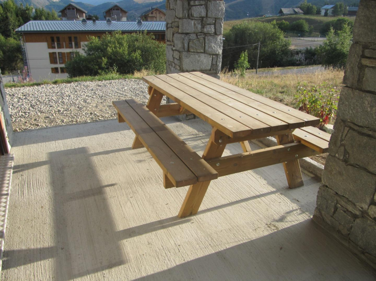 - Terrasse avec table de pique nique et chiliennes.