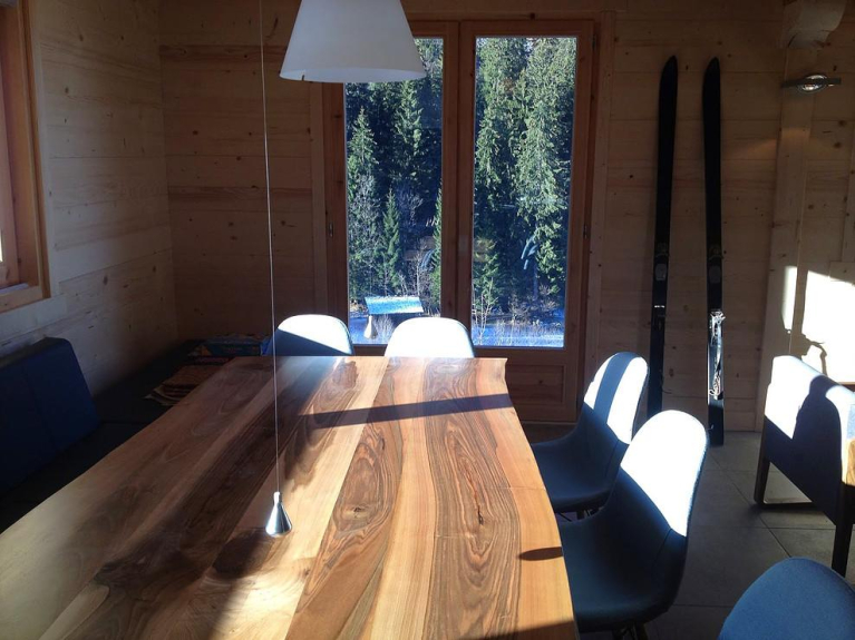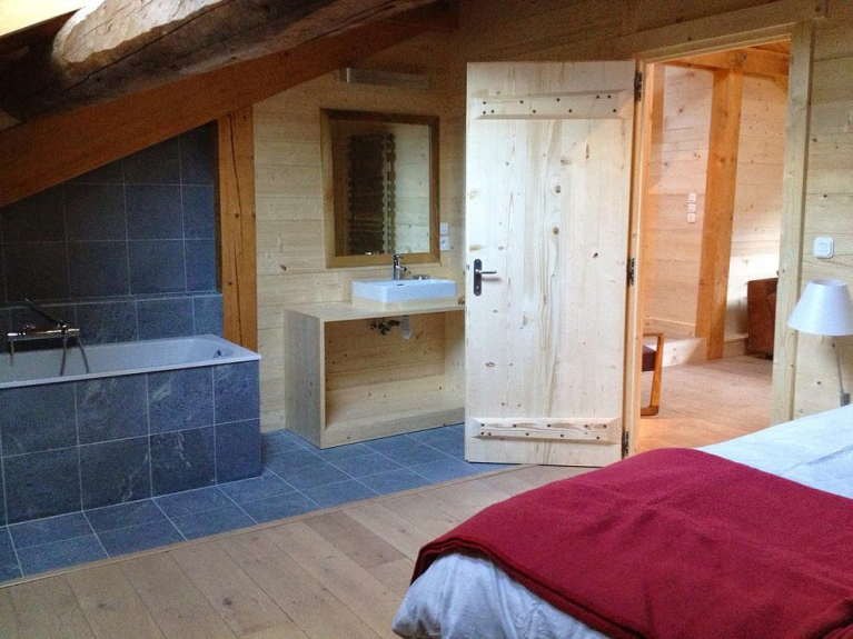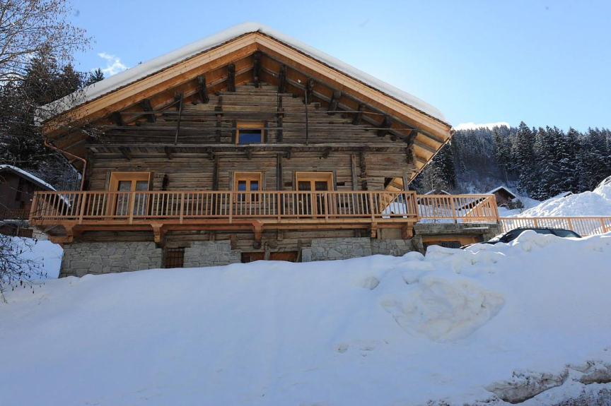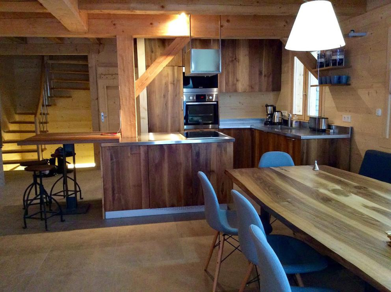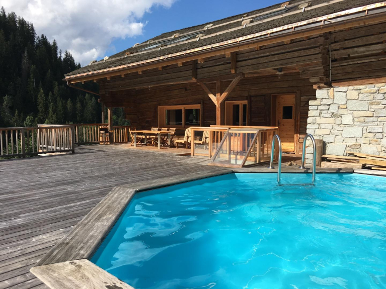 Chalet 19eme siècle entièrement rénové à l'entrée de la station de ski d'Arêches-Beaufort, en 2 chalets mitoyens - grande terrasse avec piscine et garage couvert .