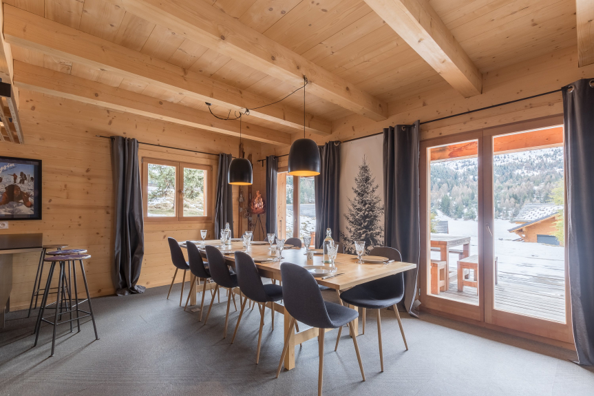 Nous vous proposons à la location, sur la commune du Dévoluy, ce chalet d'exception avec vue montagne et pistes de ski accessibles à pied (domaine unique de Superdévoluy/La Joue du Loup). D’une superficie de 200 m² pouvant accueillir jusqu’à 12-14 voyageurs, décoré par un architecte d’intérieur, très personnalisé et plein sud, il est composé d’une jolie pièce à vivre de 100 m² (salon et salle à manger avec cheminée), d’un second salon indépendant avec télévision, d'une cuisine totalement équipée, de cinq belles chambres, de deux salles de bain (avec douche et baignoire) et d'un sauna. Vous pourrez profiter d’un jardin d’environ 1 000 m². Wifi (fibre optique), draps, serviettes et ménages inclus. Les lits sont également installés avant votre arrivée. Nous n’attendons plus que vous!