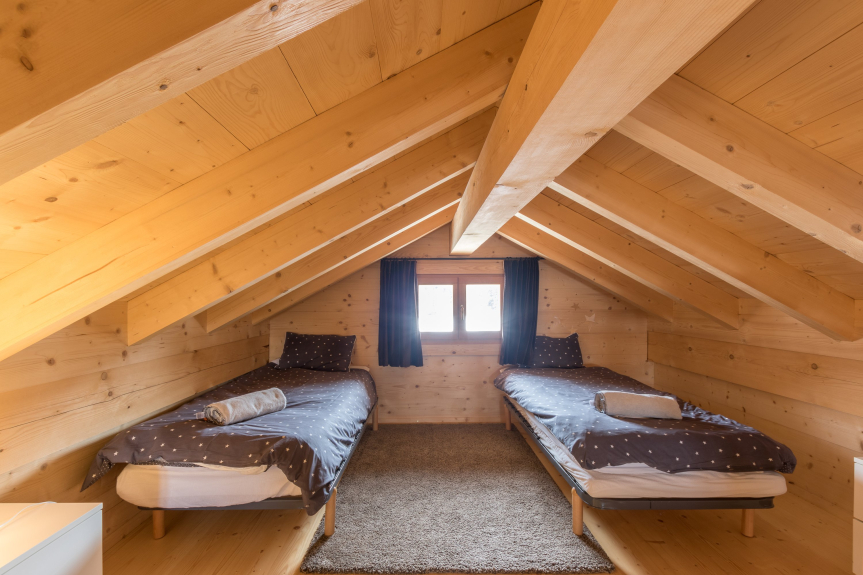 - Chambre 5 : pièce sous les toits, ouverte avec avec 4 lits simples