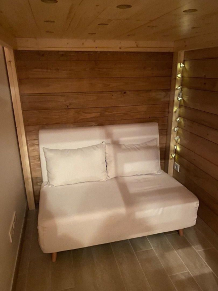 1 canapé convertible avec sommier à lattes 140x190 pour couchage 2 personnes.