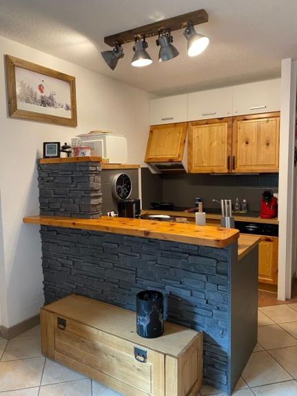 Très bel appartement plein sud, au pied des pistes avec une belle pièce de vie en open space face au jardin des neiges. Accès direct aux cours de ski et à la télécabine par sa terrasse.