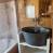 Coin salon très cosy, avec écran plat Connectée, canapé lit de 140 , poufs en fourrure. Grande salle d'eau avec douche et wc.