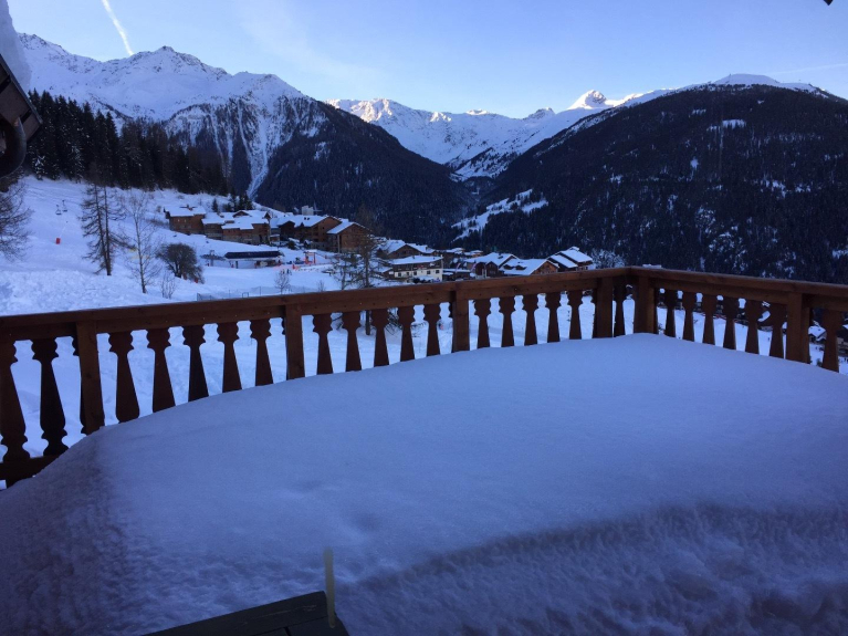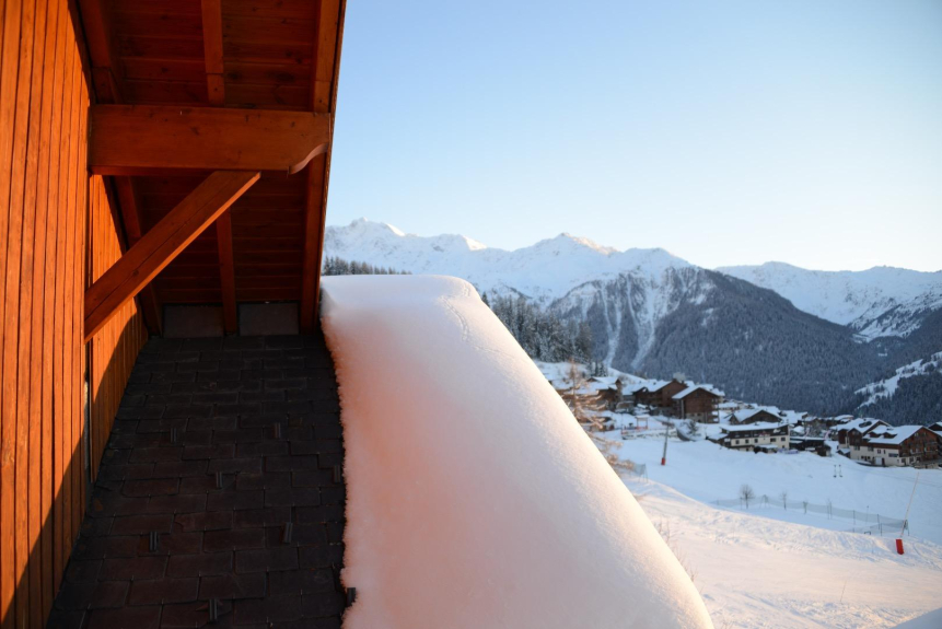 Les terrasses ainsi que le balcon bénéficient d'une vue spectaculaire sur la vallée, le domaine de la Plagne, la station et le massif de Bellecôte.