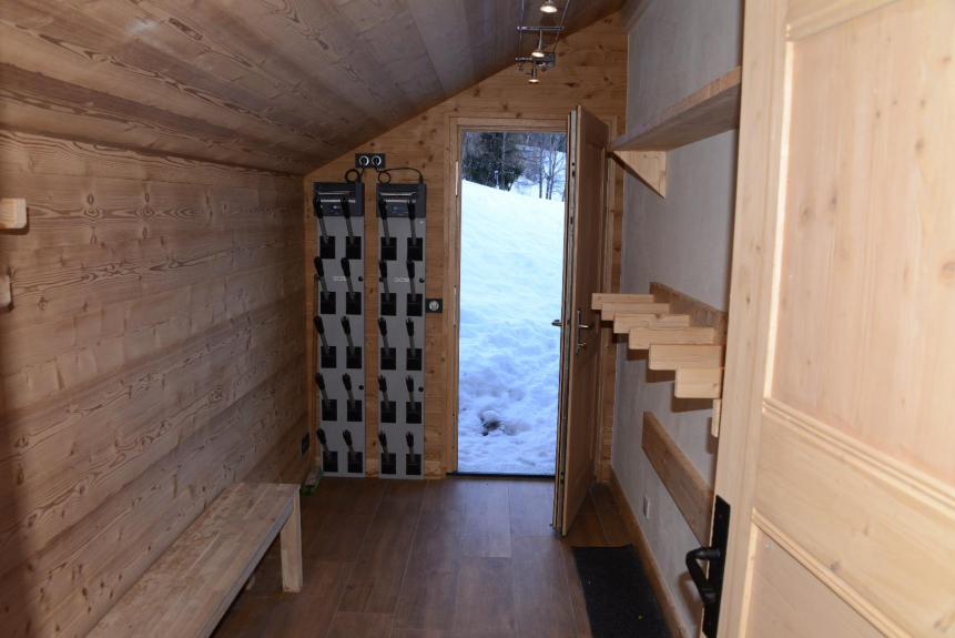 Un ski room se situant à l'entrée permet de s'habiller, prendre ses skis et partir. Le ski room est équipé de sèche-chaussures et sèche-gants.