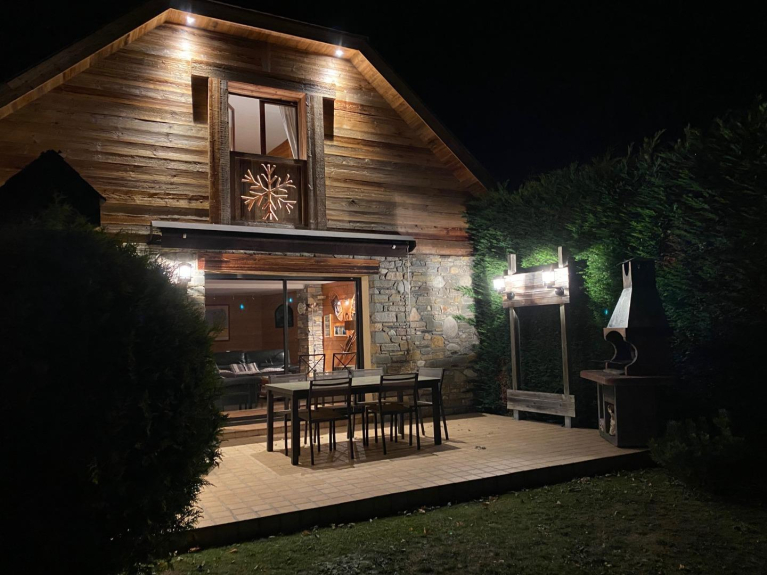 Gite/Chalet situé à ARREAU dans un quartier calme et résidentiel, à proximité à pieds de toutes les commodités que peut offrir le village ( commerces, restaurants, poste, bars, marché hebdommadaire le jeudi, etc... ).